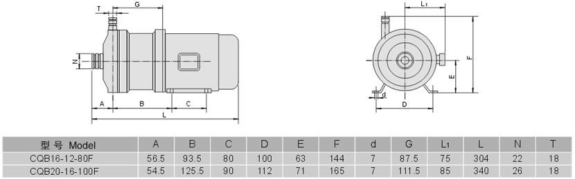四、CQB-F襯氟磁力泵性能參數(shù):