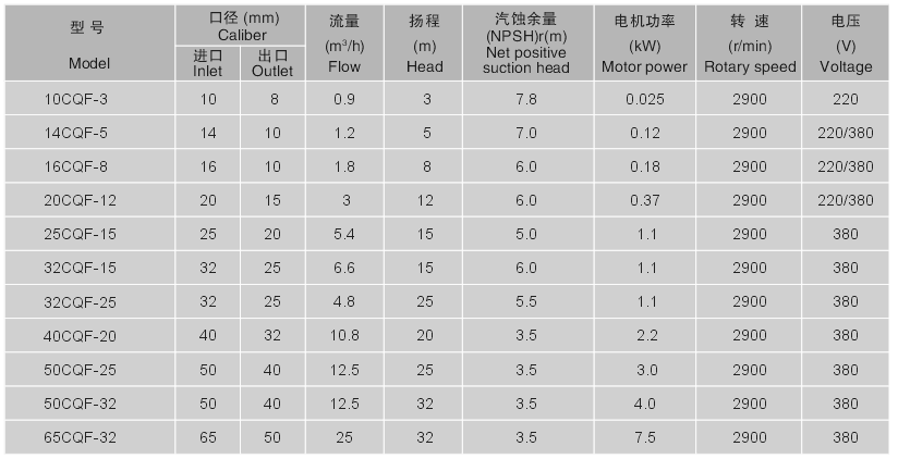 注:表中20CQF-12---65CQF-32都可配防爆電機(jī) |
